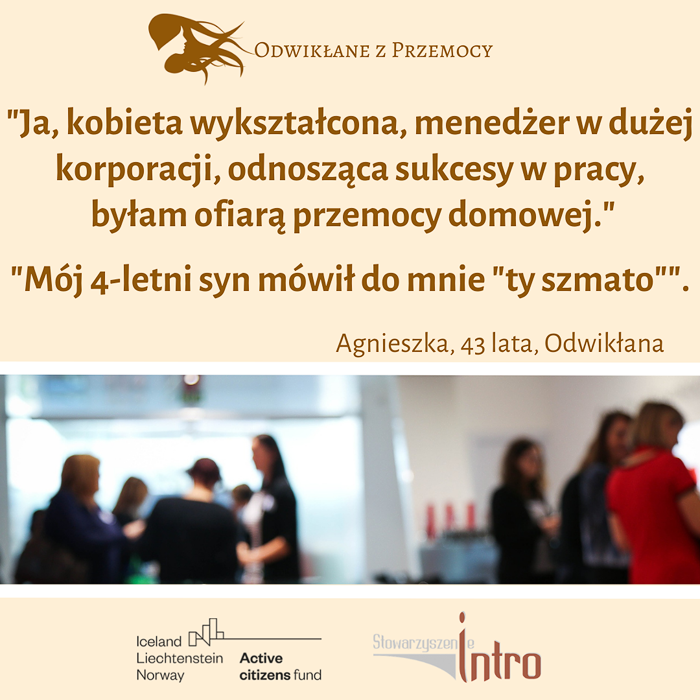 Zacznę od tego, że dopiero wtedy kiedy uwolniłam się od mojego męża, kiedy wyprowadził się z domu, dopiero wtedy poczułam konieczność sięgnięcia po pomoc. Wiedziałam, że nie poradzę sobie z moimi chłopcami, którzy patrząc wiele lat na przemoc, doświadczając jej, nie byli łatwymi dziećmi. Mój 4 letni wówczas syn mówił do mnie "ty szmato..." Kiedy wyszłam za mąż, wydawało mi się, że to dobry człowiek - pewnie tak jest... potrafił dbać o dzieci, dom. Tylko czasami wstępował w niego jakiś szatan, w jednej sekundzie stawał się innym człowiekiem. Wtedy przychodziły chwile grozy, płaczu, lęku, totalnej bezsilności. Wszystko zaczęło się, kiedy urodził się młodszy syn. Mąż stał się nerwowy, wybuchowy, wyzywał dzieci, popychał, szarpał. Kiedy stawałam w obronie dzieci (zawsze brałam ich w kącik pokoju i osłaniałam swoim ciałem) krzyk był wtedy przeraźliwy. Kiedy chciałam dzwonić na Policję, zabierał mi telefon, wyjmował kartę i nie mogłam wezwać pomocy. Najgorszy dla mnie wtedy był ten wstyd, że słyszą to sąsiedzi. ten żal, że moje dzieci tego doświadczają. Najbardziej cierpiałam, jak krzywdził dzieci - potrafił rzucić starszego syna o ścianę i trząchać nim w górze, wyzywać dzieci od skurwysynów, debili... Kiedyś syn powiedział nauczycielce w szkole, że jest bity przez ojca. Zostałam wezwana do szkoły, z olbrzymim wstydem (to była mała miejscowość - byłam tam osobą znaną, opiniotwórczą) poszłam na spotkanie, nie miałam siły żeby prosić o pomoc, a tak właściwie to nikt tej pomocy nie chciał mi udzielić, potraktowano to jak jednorazowy incydent, zamiatając sprawę pod dywan. Mieszkając w małej miejscowości trafiłam na wspaniałych sąsiadów, którym los dzieci nie był obojętny. Wielokrotnie przychodziła sąsiadka, chcąc rozmawiać z mężem o tym, jak traktuje dzieci, zaczepiali mnie sąsiedzi, prosili, żebym coś zaczęła z tym robić, bo dłużej tak być nie może. Musiałam zmienić pracę i przeprowadziliśmy się do dużego miasta - to była dla mnie olbrzymia radość, że zacznę wszystko od nowa. Nowe otoczenie, nowi sąsiedzi - nikt nie będzie o niczym wiedział... Szybko jednak wrócił wstyd, lęk i strach... żyłam zamknięta w czterech ścianach, we własnym świecie. Ja, kobieta wykształcona, menedżer w dużej korporacji, odnosząca sukcesy w pracy byłam ofiarą przemocy domowej. Na co dzień nosiłam maskę. nikt o tym nie wiedział. Na pozór byliśmy normalną rodziną. On Pan, który był z pozoru super tatą, świetnie organizował dzieciom czas wolny, wychodził na plac zabaw. I ja - zła matka..., która nie wychodziła z chłopcami... Wciąż mówił, że jestem złą matką, ciągle mówił "mogłabyś to, mogłabyś tamto..." A ja pracowałam, aby utrzymać rodzinę, dbałam o dom i dzieci tylko faktycznie nie wychodziłam z nimi na dwór. Mój dom był zamknięty... nikt nas nie odwiedzał, potraciłam wszystkich przyjaciół, nie miałam ochoty na spotkania towarzyskie. Zawsze, kiedy dzieci zostawały z ojcem czułam olbrzymi niepokój... bałam się odebrać telefon od syna, bo myślałam, że coś złego się dzieje. Zebrałam w sobie siły i oświadczyłam mu, że jeśli jeszcze raz uderzy dziecko, powiadomię o tym Policję. Poskutkowało, na krótko, ale poskutkowało. Wtedy to cała agresja skupiła się na mnie. Wszystko działo się (na szczęście) w nocy, jak dzieci spały. Wtedy każdy powód był dobry. Dostawał furii, rzucał na podłogę walił pięścią w brzuch i głowę, z całej siły, ile wlazło. Był przy tym cały czerwony, spocony, biała piana pokazywała się na jego ustach. Chciał uderzać w szczękę (wiedział, że jestem po przeszczepie kości) - i każde uderzenie mogłoby spowodować tragedię. Broniłam się osłaniając rękami swoją twarz. Po każdym pobiciu zostawały potężne guzy na głowie, krwiaki, ból brzucha, siniaki na ciele i potężny ból, ból wewnętrzny, żal - wtedy byłam nikim - jak ta szmata wleczona po podłodze. Chciałam uciekać - nie było jak... Zabierał dokumenty, zamykał drzwi, bił dalej... już mi było wszystko jedno, chciałam nawet wyskoczyć przez okno... Krzyczałam pod drzwiami ratunku... nikt nie chciał słyszeć. Mój Pan zadzwonił wtedy na Policję - mówiąc, że jestem w depresji, zdenerwowana i chcę uciec z domu, wsiąść do auta i będę stanowić zagrożenie na drodze. Przyjechała Policja. Ja pobita siedziałam skulona na szafce w korytarzu, nie miałam siły nawet się bronić - wtedy też czułam wstyd, najchętniej bym stamtąd wyszła i już tam nie wróciła, ale przecież miałam 2 synów, których kochałam nad życie. Trafiałam do lekarza rodzinnego, dostawałam zwolnienie lekarskie, leki, ale najczęściej ukrywałam to, chodziłam do pracy. Wymagało to ode mnie potężnego wysiłku, aby wejść do pracy z uśmiechem na twarzy i udawać, że wszystko jest w porządku. Aż do pewnego razu, kiedy latem moja szefowa zobaczyła krwiaki na rękach, wtedy pękłam, opowiedziałam jej wszystko. Wtedy po kilku dniach, kiedy te siniaki już blakły zawiozła mnie do fotografa i zrobiłyśmy zdjęcia - zrobiła to wręcz na siłę, sama bym się na to nie zdecydowała. Zaczęłam czuć, że nie jestem z tym sama. Po tym właśnie pobiciu mąż wyprowadził się, wychodząc położył klucze mówiąc, że musi to zrobić bo mnie kiedyś zabije. Poczułam olbrzymią ulgę i radość. Nie trwało to długo. On działał dalej... buntował starszego syna, zabraniał mi chodzić na wywiadówki, straszył, że on pokaże wszystkim, jaką jestem złą matką. Sam umawiał chłopców do lekarza, brał ich ze szkoły, przedszkola bez mojej wiedzy. Nawet, jak prosiłam, żeby mi powiedział, o której godzinie dziecko ma wizytę - to nie mówił. Kiedyś dowiedziałam się, że umówił na szczepienie młodszego syna. Poszłam do przychodni i zostałam strasznie