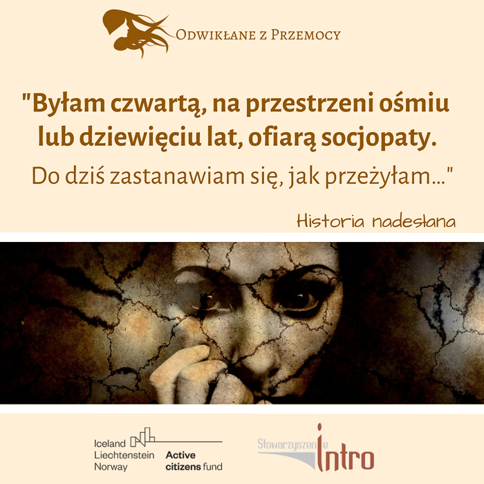 ...Kłamstwa wychodzą jedno po drugim. Pije, bije, wyzywa, jest agresywny, nawet jak nie pije. Wyzywa od wariatek. Ciągle wytyka, że nie jesteś taka, jak powinna być kobieta. Mówi Ci, jak powinnaś zareagować. On WIE LEPIEJ. Pije wino do nieprzytomności, sika do łóżka, myli kuchnię z muszlą klozetową. Ten sam schemat powtarza się w każdym związku. Przypadek? Nie sądzę... Ja uciekłam po 1,5 roku - omal mnie nie zabił. Odeszłam od razu po tym pobiciu. Natomiast od trzech miesięcy wiedziałam, że już nie chcę dalej w tym być. Wiedziałam, czułam, że dłużej nie dam rady funkcjonować w tych kłamstwach, co chwila wychodziły inne... Pomogła mi terapia, którą zaczęłam w trakcie związku. Najbardziej jednak pomogła mi wizyta u psychiatry i proszki na depresję, którą już miałam. Proszki sprawiły, że poczułam się lepiej psychicznie, wróciła mi dawna pewność siebie, zobaczyłam też, co ten człowiek zrobił ze mną przez rok. Schudłam 10 kg, moja twarz była szara, straciłam zainteresowanie wszystkim, co kochałam robić. Długo broniłam się przed antydepresantami, ale wiem, że to one po części pomogły mi stanąć na nogi i uratowały mnie przed najgorszym. Ja już sobie poradziłam i jestem bezpieczna. Nie boję o siebie. Ale boję się o Was, o inne kobiety szukające miłości. Boję się o te, które jeszcze mu zaufają... Chciałbym uchronić chociaż jedną kobietę przed tym potworem, który wciąż chodzi po mieście, zakłada Tindera i szuka ofiar." Historia została nadesłana do strony Odwikłane z Przemocy NASZ KOMENTARZ: Ta krótka historia idealnie pokazuje schemat uwikłania, który powtarza się w sytuacjach przemocy: oczarowanie, manipulacja, narastająca agresja i przejmowanie kontroli nad drugą osobą, niszczenie jej.