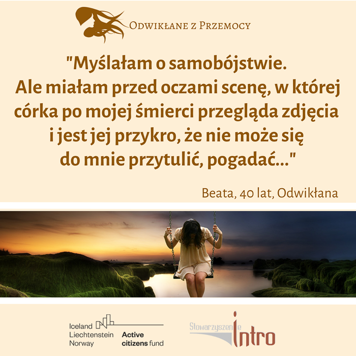 a po kilku miesiącach znalazłam nowe mieszkanie. Zaczął też wraz z matką nastawiać wspólnych znajomych przeciwko mnie, "robić mi opinię" - zgodnie z zapowiedzią. Jego matka jest dobrą koleżanką prezydenta miasta, który wcześniej był nauczycielem. Ma znajomych wśród dyrektorów i nauczycieli szkół, przedszkoli, żłobków i innych osób pełniących funkcje publiczne w mieście. Pracuje w urzędzie miasta na stanowisku kierowniczym. Uchodzi za cichą, opanowaną, miłą, pomocną osobę. Część moich znajomych jest jej znajomymi. Część z nich potraciłam. W szkole byłam doceniana, miałam opinię dobrego, sprawiedliwego nauczyciela, który nie daje sobie wchodzić na głowę - taki dostawałam feedback. Praca sprawiała mi ogromną radość, ładowała mnie, czułam, że w niej kwitnę. Nikt nie wiedział, co się dzieje u mnie w domu. Było mi wstyd, że taki niepozorny facet, nazywany przez niektórych "ciepłymi kluchami" albo "ciapą", "chłopczykiem", mnie dręczy. Że jestem w ten związek uwikłana. Że weszłam w to jak w masło, chociaż nie chciałam, ale tak się narzucał, a ja pomyślałam, że musi mu na mnie bardzo zależeć. W rzeczy samej. Że mu się daję, że steruje mną, że mu tak wiele o sobie powiedziałam i on to teraz wykorzystuje przeciwko mnie, że zaufałam mu, że może mną manipulować jak kukiełką, wywołując we mnie automatycznie trudne emocje i być z tego dumnym. Pamiętam, gdy naciskał we mnie czuły punkt, po czym odchodził opanowany i wyprostowany, z cynicznym uśmieszkiem. Albo klepał mnie po głowie, po czym wychodził na papierosa z kawą w moim ulubionym kubku. Analizowałam swoje wypowiedzi i co zrobiłam, bo nie chciało mi się wierzyć, że można dręczyć emocjonalnie człowieka tak po prostu. A naciskał na guziki szczególnie w dniu świąt, tuż przed przyjęciem urodzinowym córki, przed ważnymi dla mnie wydarzeniami, których nie mogłam się doczekać, które lubiłam. Ja w środku buzowałam, a on spokojnie siedział lub kroczył wyprostowany, udając, że nie wie, o co mi chodzi i twierdził, że znowu mi coś odwaliło, znowu mam jakiś problem. Gdy zaszłam w ciążę, chciał mnie zostawić. To po tym, jak dowiedział się, że ingerowałam w sposób traktowania jego syna. Nie rozumiałam tego. Zawsze uważałam, że dzieci należy bronić, gdy doświadczają niesprawiedliwości ze strony dorosłych. Okazało się później, że pomysł zostawienia mnie był pomysłem jego matki. Jej zdaniem, to były ich rodzinne sprawy i nie miałam prawa się wtrącać. Potem, gdy byłam już w zaawansowanej ciąży, wydzwaniała do mnie i pytała o rzeczy, o których nie miałam pojęcia, bo ustalała je tylko ze swoim synem za moimi plecami, obwiniała mnie, że w ogóle nie interesuję się tymi sprawami i pewnie sobie myślę, że pieniądze to z nieba lecą. Nie wiedziałam, o czym ona mówi. Byłam już tak roztrzęsiona, że wyszłam z domu, aby kupić doładowanie do telefonu i powiedzieć mu, żeby porozmawiał z matką, bo ja dłużej już nie zniosę takiej sytuacji. Było ciemno, jesień albo zima. Gdy poszłam do bankomatu wypłacić pieniądze, to okazało się, że nie mogę żadnych wypłacić, a stan konta pokazywał mi ponad 700 zł na minusie, co mnie dodatkowo zmroziło. Już nie pamiętam, jak to zrobiłam, ale pamiętam, że jednak kupiłam to doładowanie i zadzwoniłam do niego. Był rozbawiony tą sytuacją. Ogarniałam mieszkanie, małe dziecko i zdobywałam pieniądze. Było ciężko, bo miałam jako nauczyciel w prywatnej szkole umowę o dzieło, a potem umowę-zlecenie i dostawałam wypłatę za zrealizowane godziny, a te wynikały z podstawy programowej i było ich mało. Pracodawca też nie płacił na czas. Dorabiałam więc udzielaniem zdalnych korepetycji, tworzeniem zdalnych kursów i sprzedażą rękodzieła. Ale i tak było mało na trzy osoby. Z prowadzenia firmy musiałam zrezygnować. On praktycznie prawie nic nie robił w domu. Wykłócał się, gdy miał się zabierać za cokolwiek. Nie pracował już wtedy, bo został zwolniony i nie szukał pracy, przeważnie spał do 14-tej. Żyliśmy z tego, co ja zarobiłam. Podsiadał mnie podczas pracy przy moim komputerze i stawał się agresywny. Krzyczał do mnie, żebym w końcu ruszyła dupę do roboty, a nie przesiadywała przed komputerem i nie przeginała pały. Sam spędzał godziny na graniu w gry komputerowe, tzw. sieciówki, gdy tylko się dało. Wydawał pieniądze na ulepszanie bohaterów i tzw. upgrady, co wychodziło z czasem. Potem w gry przemocowe zaczął wciągać dzieci, o czym poinformowała mnie córka, kiedy mieszkałyśmy już osobno i on ją zabierał do siebie. Powiedziała też, że wcześniej, gdy jeszcze mieszkaliśmy wszyscy razem i na przykład byłam w kuchni, to ona siedziała obok i widziała krew, która lała się w walce, w której tata uczestniczył. Jeszcze jak mieszkaliśmy razem, obudziła się pewnej nocy z płaczem i powiedziała, że śniło jej się, że tata ma obciętą głowę. Miała wtedy cztery lata. Ten koszmar wspomina do dziś, mimo że minęło z 6 lat. Wmawiał mi, że go wykorzystałam do zrobienia sobie dziecka, bo nie miałam z kim. Gdy już złożyłam pozew o alimenty, syczał nade mną w odległości kilku centymetrów od moich oczu, że mnie tak strasznie nienawidzi i zaraz mi łeb rozwali. Sięgał przy tym nerwowo po komórkę, udawał, że gdzieś dzwoni, po czym rzucił, że zaraz policja mnie wyprowadzi z rozwalonym łbem. Tylko raz użył wobec mnie przemocy fizycznej. Kiedy zerwał się z łóżka po telefonie matki, która prosiła aby kupił jej marchewki do zupy, a ja zapytałam, dlaczego tak się nie zrywa, gdy jest coś do zrobienia u nas w domu i powiedziałam mu, co o tym myślę. Wyszarpał mnie wtedy z pokoju, w którym przygotowywałam mleko w butelce dla córki, do przedpokoju, przycisnął do ściany, unieruchomił mi ręce i powiedział, żebym 